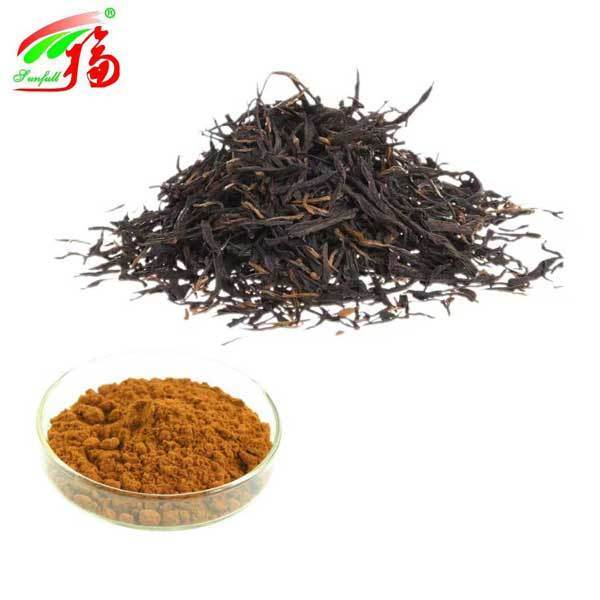 Theaflavins are the most important active constituents of black tea extract. Theaflavins (TFs) possess various healthy and medicinal actions and will serve as effective anti-cardiovascular and blood vessel of brain, anti-atherosclerosis and anti-hyperlipodemia agents. American contemporary pharmacological studies show that TFs are more likely to be a new kind of anti-cardiovascular and blood vessel of brain drug and also to be a kind of natural aspirin.